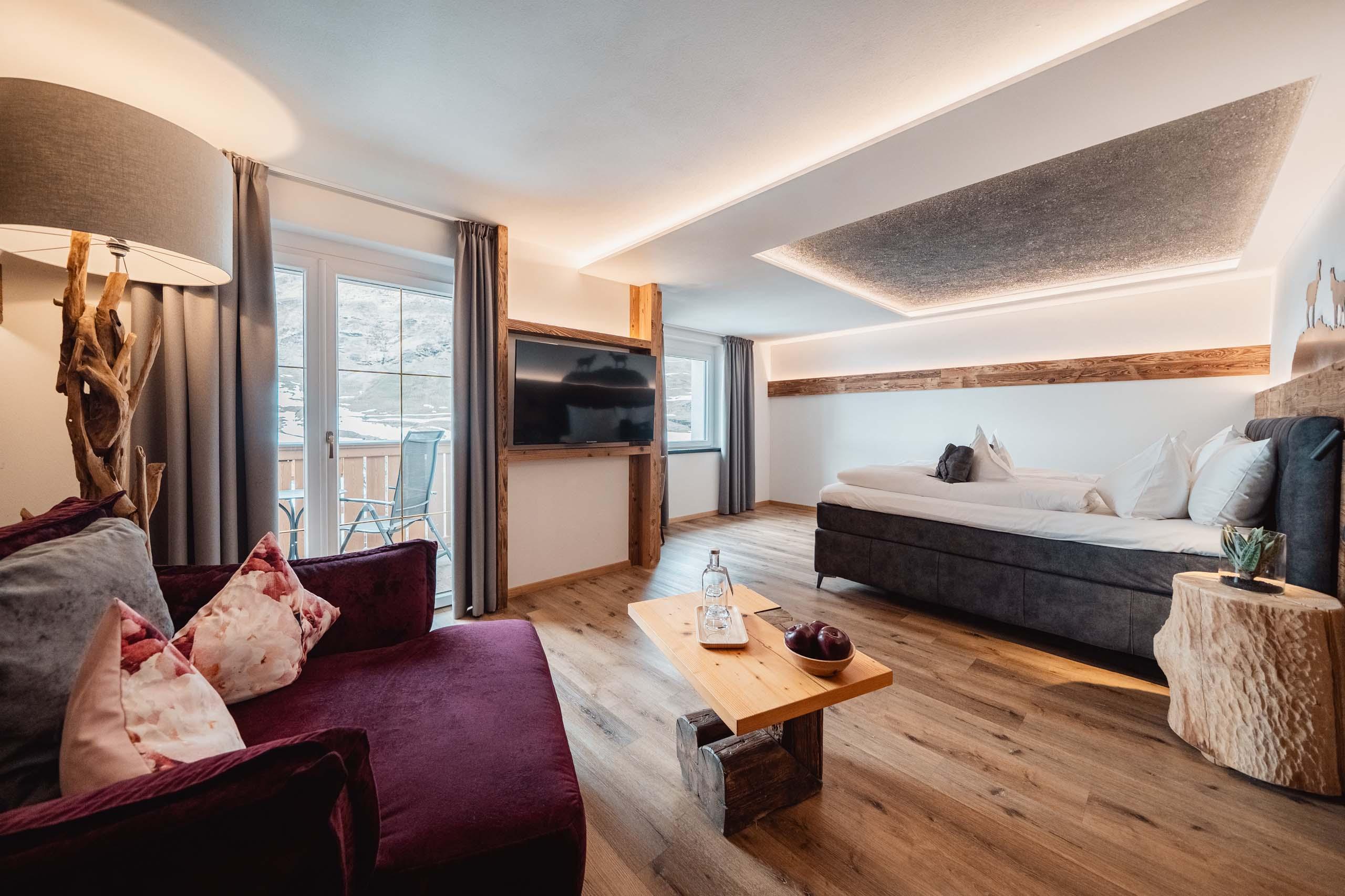 La Camera Coccole è stata progettata per chi cerca un angolo intimo dove vivere emozioni e relax. Grazie al suo arredamento accogliente e al panorama alpino, questa camera è la scelta perfetta per coppie che vogliono vivere un soggiorno romantico. È dotata di bagno moderno con doccia/WC, asciugacapelli e set wellness, WiFi gratuito, TV, telefono e cassaforte, e ampio balcone con vista panoramica sulle montagne.