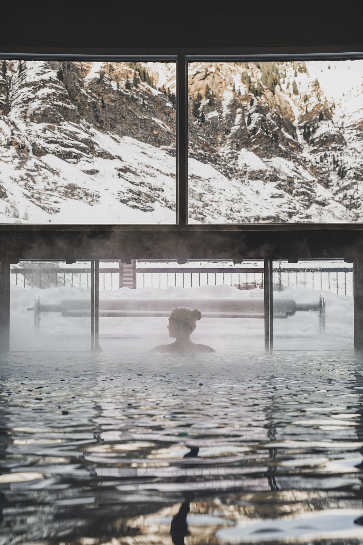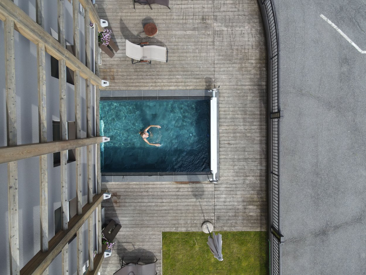 Pool und Panoramasauna zum Entspannen ein.