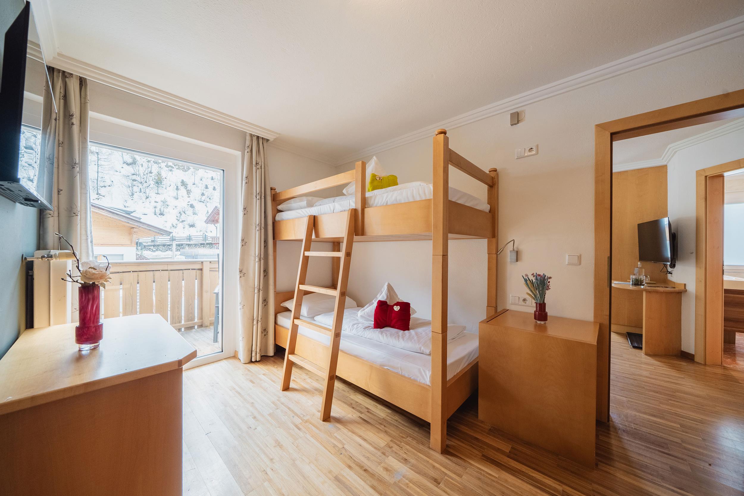 Perfekt für alle, die ein schlichtes, aber bis ins kleinste Detail durchdachtes Zimmer suchen: Das Zimmer Classic Family bietet einen intimen und funktionalen Raum für eine bis vier Personen. Der private Balkon schenkt einen atemberaubenden Blick auf die Berge und lädt zum Entspannen ein. Das Zimmer ist mit einem modernen Badezimmer mit Dusche und WC, Haartrockner und weichen Bademänteln, kostenlosem WLAN, TV, Telefon, Safe und einem Panoramabalkon ausgestattet.